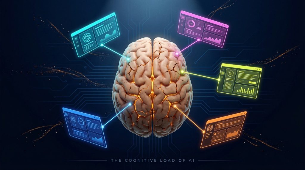 כדי להבין למה AI כל כך מתישה, צריך להסתכל על שלושה מנגנונים קוגניטיביים. לא מדובר בעייפות גופנית, אלא בתופעה שמוכרת היטב בחקר המוח, מצב שבו המוח שורף אנרגיה בקצב כזה שהוא שוחק את עצמו.