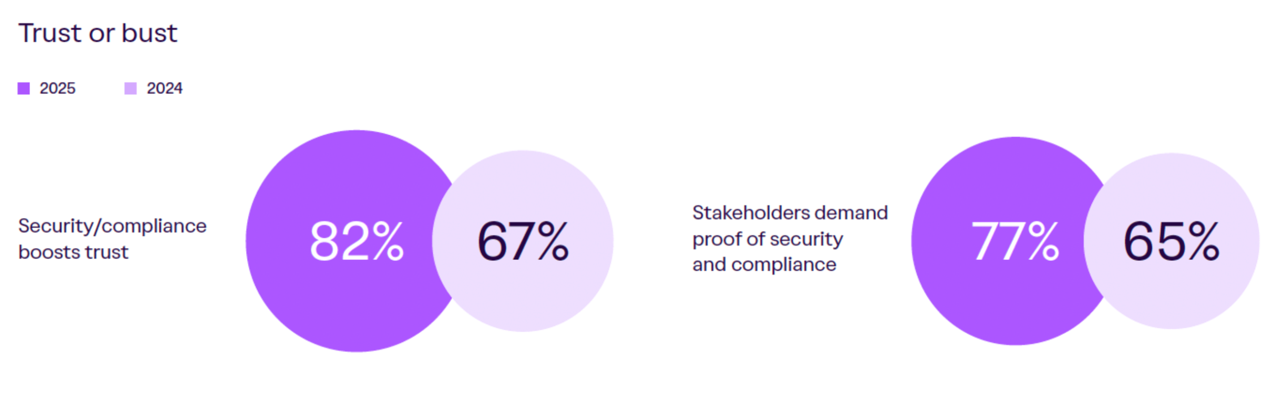 - השינוי המרכזי: 82% מהמנהלים סבורים שחיזוק אבטחה וקומפליינס מגדיל ישירות את אמון הלקוחות זינוק חד מ-67% בשנה שעברה. זו עלייה של 22% בשנה אחת.
