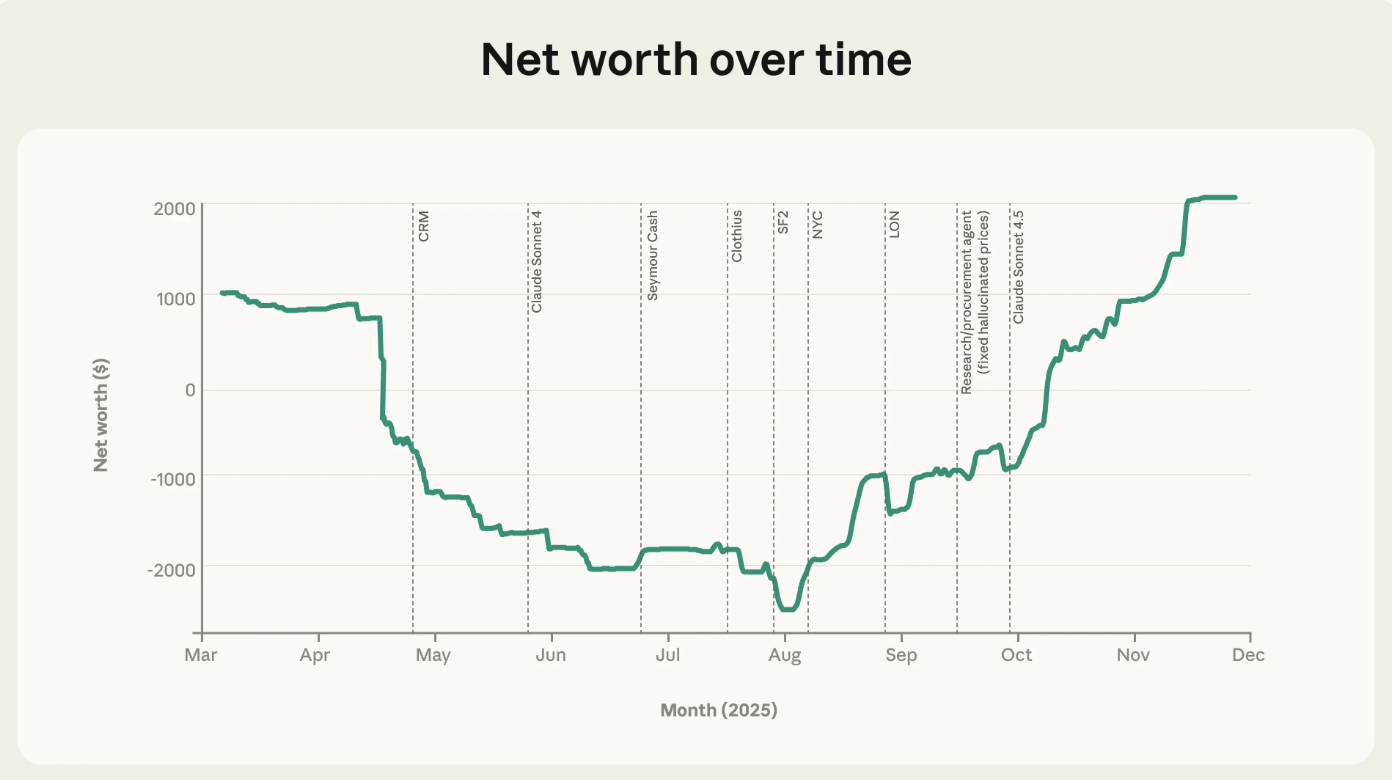 החודשים הבאים של הניסוי סיפקו את מה שנראה כמו ניצחון של הארכיטקטורה על הכאוס. לפי הדיווח המסכם של אנטרופיק מדצמבר 2025, “שבועות של שולי רווח שליליים חוסלו כמעט לחלוטין”, והחנות הקטנה בסן פרנסיסקו הפכה לרשת בינלאומית זעירה עם שלוחות בניו יורק ובלונדון.