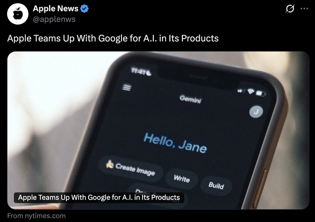 לאחר “הערכה מדוקדקת”, כפי שנכתב בהודעה הרשמית, אפל קבעה שמודלי Gemini של גוגל מספקים את ה״תשתית בעלת היכולות הגבוהות ביותר״ עבור הדור הבא של Apple Foundation Models.