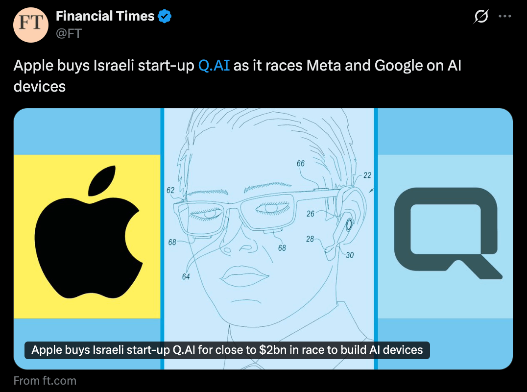 בסוף ינואר 2026 אפל (Apple) ביצעה מהלך חריג, כמעט שקט, כזה שקל לפספס בין כותרות רועשות על מודלים חדשים וצ’אטבוטים מתקדמים. בלי אירוע תקשורתי, בלי הדגמות נוצצות ובלי הצהרות גדולות, החברה אישרה כי רכשה את הסטארט-אפ הישראלי Q.ai. עסקה שמוערכת, לפי דיווחים שונים, בטווח שבין 1.5 ל-2 מיליארד דולר, והופכת לשנייה בגודלה בתולדות אפל, אחרי רכישת Beats ב-2014. מאחורי השקט הזה מסתתר סיפור רחב יותר. לא רק אקזיט ישראלי משמעותי, אלא הצהרה אסטרטגית על האופן שבו אפל מבינה בינה מלאכותית, ועל המקום שבו היא בוחרת להשקיע את עיקר מאמציה בעידן שבו כמעט כל שחקן טכנולוגי גדול ממהר להציג יכולות AI חדשות.