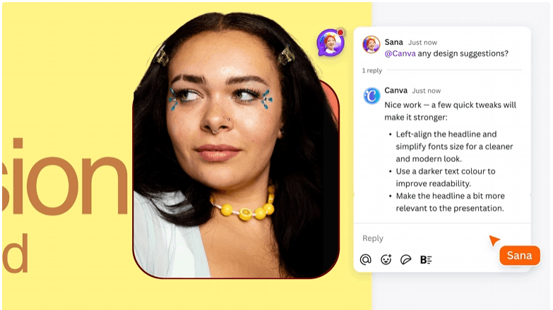 עיצוב טוב הוא לא תהליך לינארי – לפעמים אנחנו מתלבטים בצבע, בכותרת או בפריסה. ה-Ask @Canva הוא שותף יצירתי חדש שמאפשר לשאול שאלות, לבקש הצעות, או אפילו לייצר גרפיקה חדשה – ישירות מתוך העיצוב עצמו. פשוט מתייגים את @Canva בתגובה, ומקבלים תשובה מיידית, כולל התאמה לסגנון, צבעוניות והקשר העיצוב שלכם. זו למעשה חוויית עיצוב שיתופית – עם עוזר בינה מלאכותית שמבין הקשר, סגנון ומטרה.