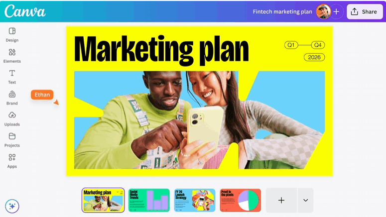 עם AI-Powered Designs, אפשר ליצור עיצוב שלם תוך שניות – בין אם זו מצגת, אתר, סרטון או פוסט ברשתות החברתיות. Canva AI תבנה עיצוב שלם, מוכן לעריכה, לפי מטרה וסגנון שתגדירו. ואם אתם רוצים להוסיף פריטים בודדים לעיצוב שלכם – כאן נכנסים לפעולה AI-Powered Elements.