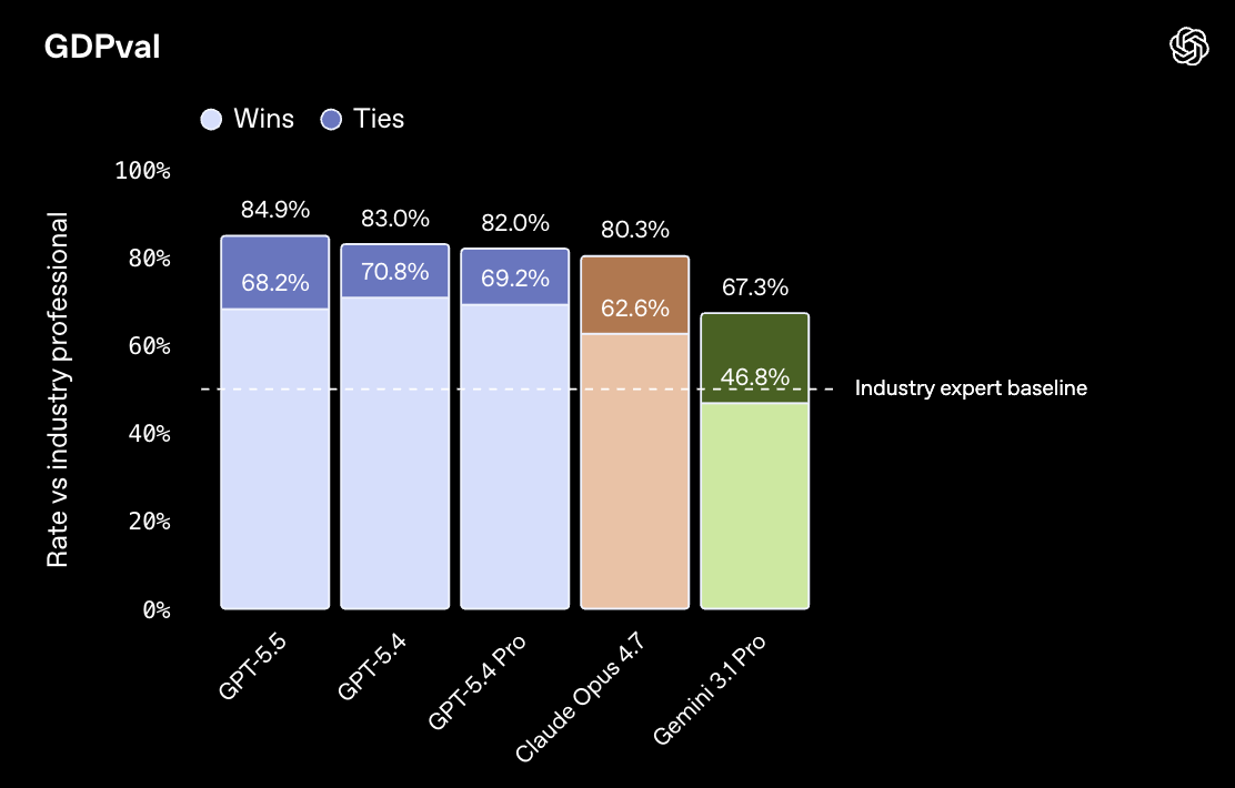 GPT‑5.5 מוביל את מבחן GDP‑Val עם 84.9% | OpenAI