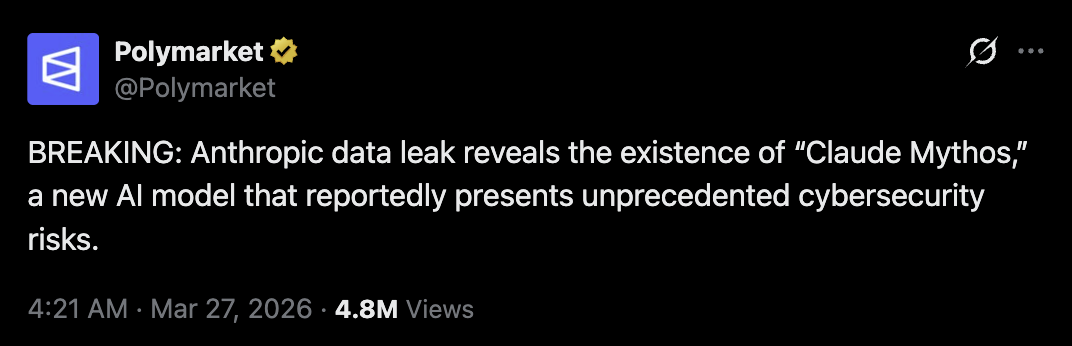 האירוע הנוכחי, לצערה של אנטרופיק, לא התרחש בחלל ריק. רק חמישה ימים קודם, ב-26 במרץ 2026, התמודדה החברה עם דליפה נוספת. לפי דיווחים שונים, נחשפו כשלושת אלפים קבצים פנימיים הקשורים למודל ניסיוני בשם Claude Mythos, המכונה בחלק מהמקורות גם Capybara. זו הייתה חשיפה רחבה של חומרי פיתוח, מסמכים פנימיים ורכיבים טכניים שלא נועדו לצאת החוצה.
