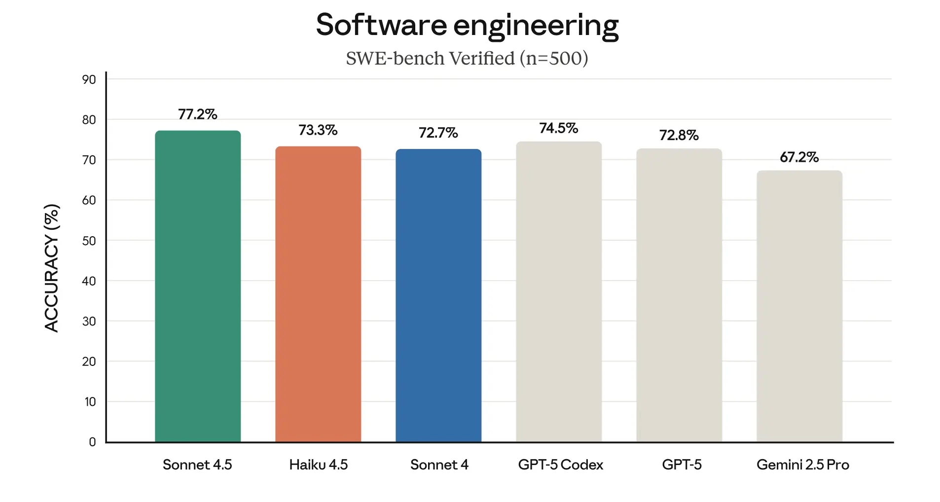 Claude Haiku 4.5 הוא הדגם הקטן והמהיר ביותר במשפחת Claude, אבל אל תתנו לגודל להטעות אתכם. הוא מספק ביצועים שעוקפים במעט את Sonnet 4 (שהיה בחזית הטכנולוגיה לפני פחות מחצי שנה) במבחני קידוד, אך במחיר ובמהירות טובים ממנו משמעותית, מה שממקם אותו כאחד המודלים היעילים ביותר בקטגוריית הביניים.