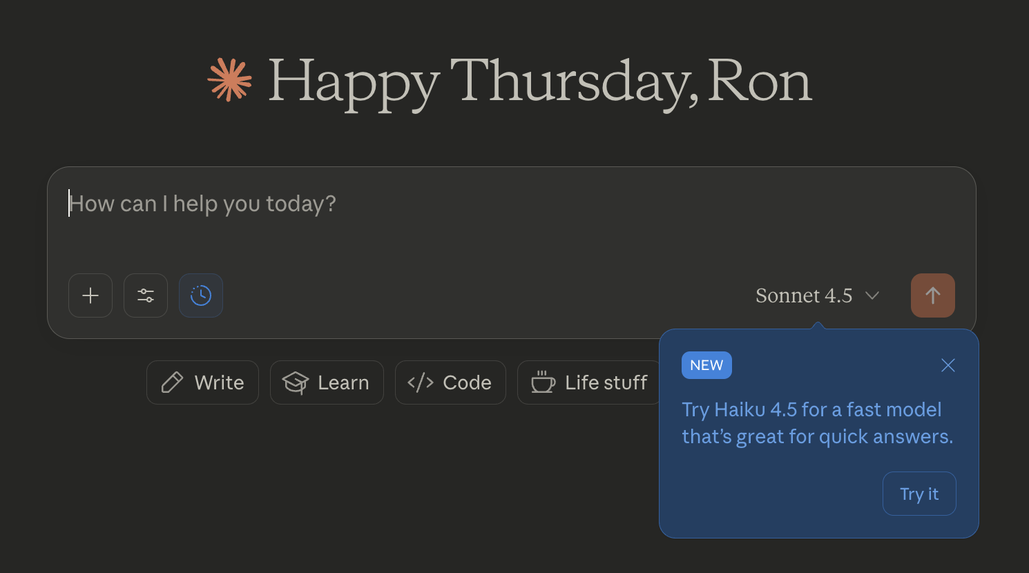 מי שנכנס לאתר או לאפליקציה אחרי ההשקה, יקבל הצעה לעבור ל-Haiku 4.5 החדש בלחיצה כפתור (Try it), ובכל מקרה, ניתן לבחור בו בכל עת דרך בורר המודלים שבממשק.
