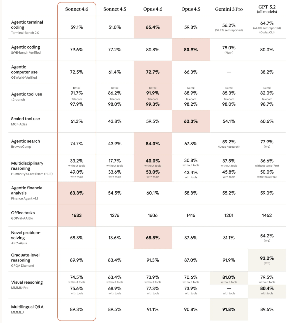 הנתונים המלאים מציגים תמונה ברורה – Sonnet 4.6 משפר את Sonnet 4.5 כמעט בכל תחום, ולעיתים אפילו מתקרב או עוקף את Opus 4.5. כך למשל, במדד BrowseComp לחיפוש אינטרנטי הוא מזנק מ‑43.9 אחוז ל‑74.7 אחוז, ובמבחן ARC‑AGI‑2 לפתרון בעיות חדשות הוא עולה מ‑13.6 אחוז ל‑58.3 אחוז.