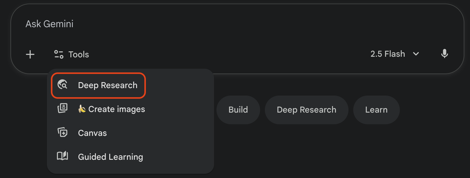התהליך מתחיל בשלב המחקר. באמצעות הפיצ׳רDeep Research, המשתמש מנסח שאלת מחקר, ו-Gemini מבצע חיפוש עצמאי ברשת. המערכת סורקת מאות מקורות, מסכמת את הממצאים ומפיקה דוח מחקר מפורט הכולל קישורים, נתונים ותובנות. המשתמש יכול לעיין גם בשלבי החשיבה והמקורות עצמם – תוספת חשובה לבדיקת אמינות.