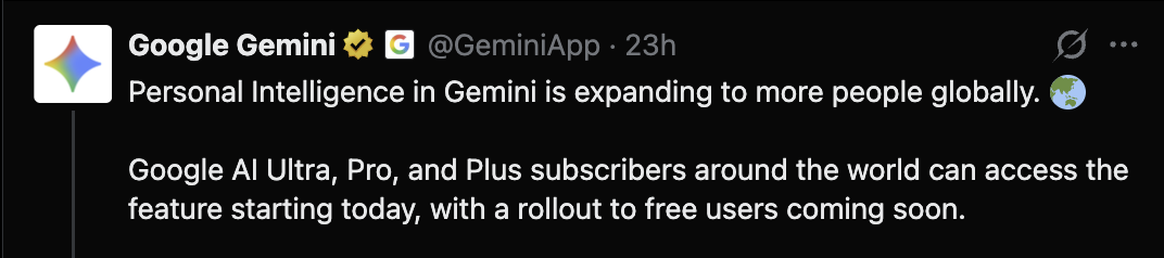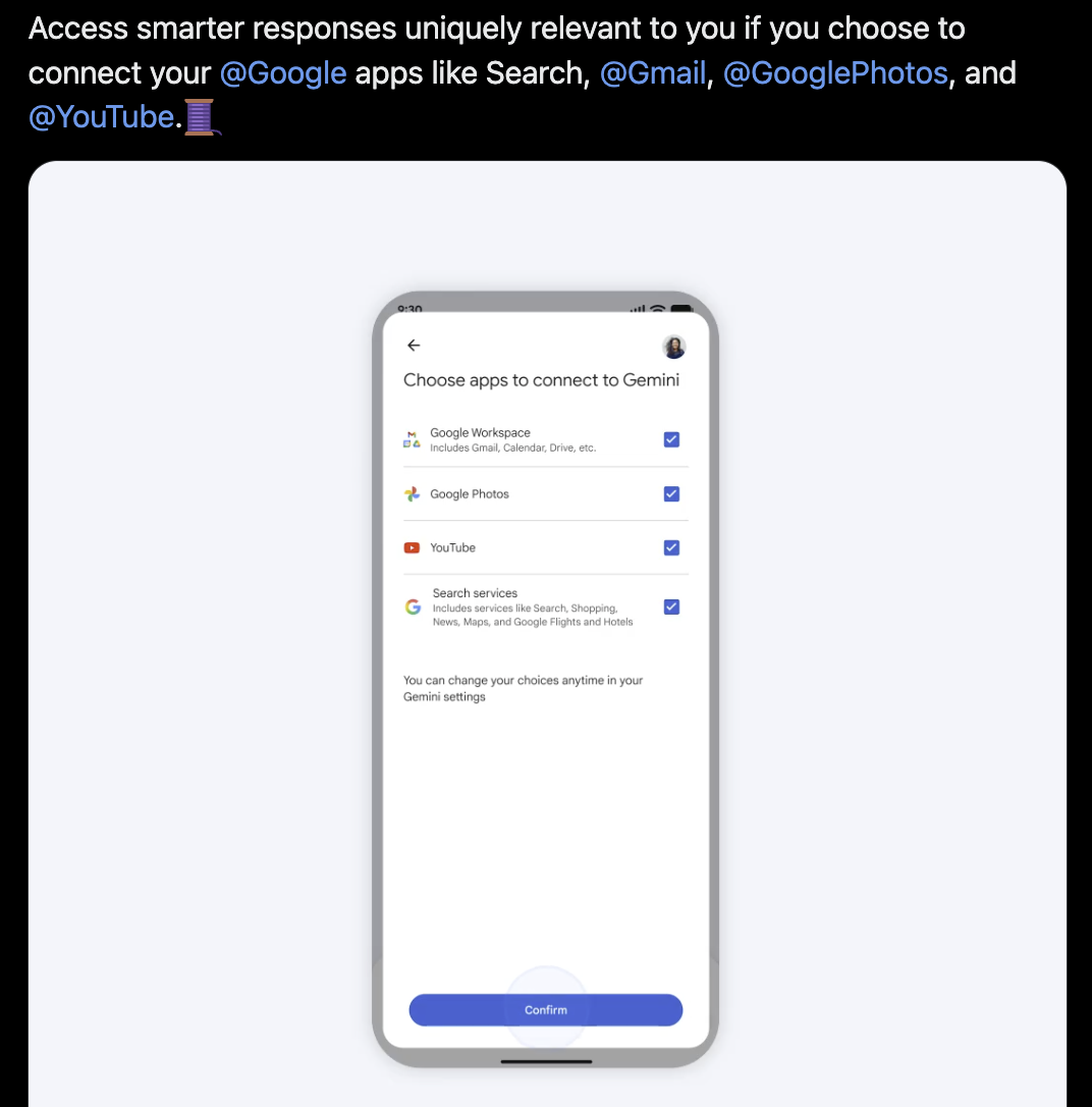 הפער הזה הפך את העוזרים הווירטואליים לכלים מרשימים אך מוגבלים, טובים בידע אך לא בהקשר, יעילים בהסברים אבל לא מכירים אתכם טוב מספיק. Personal Intelligence נועד לגשר על הפער הזה ולהוסיף ל-Gemini יכולת להבין את המשתמש דרך המידע האישי שכבר קיים בחשבון שלו, כך שהעוזר יכול לפעול מתוך תמונה רחבה ומדויקת יותר של המשתמש שמולו.