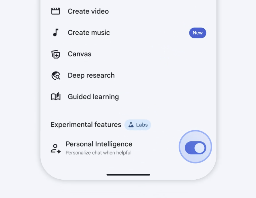 ההפעלה של Personal Intelligence פשוטה, אבל נעשית רק ביוזמת המשתמש ובאישור מפורש. כך מפעילים: