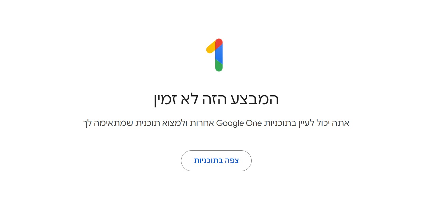 - ההצעה מיועדת למשתמשים חדשים של Google One בלבד, ואינה ניתנת לשילוב עם מבצעים אחרים.