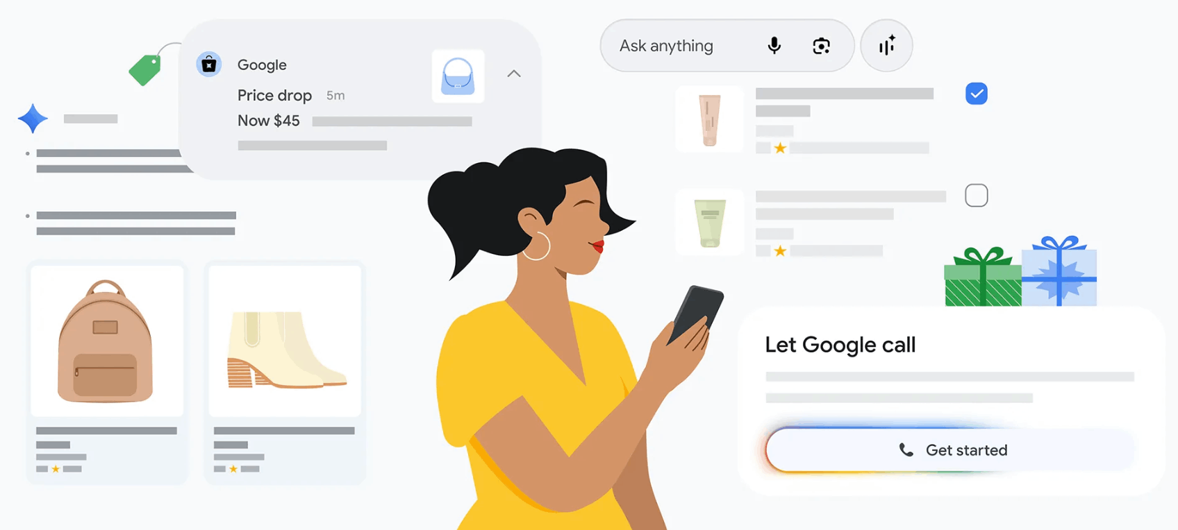 גוגל מתקשרת לחנויות במקומכם. כאשר מחפשים מוצר ליד הבית, גוגל מציעה להשתמש ב-Let Google Call. המערכת שואלת אתכם כמה שאלות, מתקשרת לחנויות מתאימות, בודקת מלאי, מחיר ומבצעים ואז שולחת סיכום מסודר למייל או להודעה.