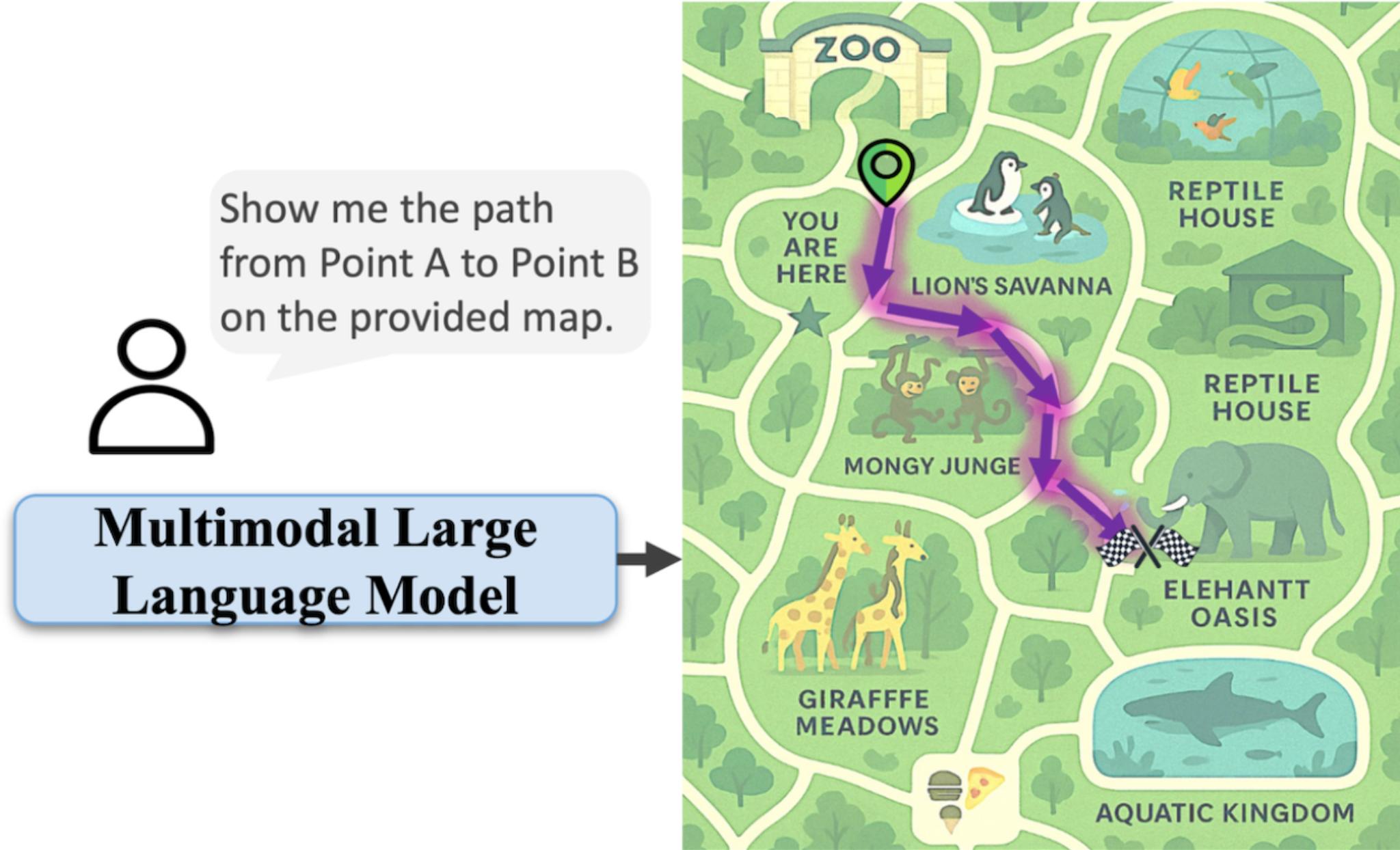 בני אדם קוראים מפה כמעט בלי לחשוב. מבט קצר מספיק כדי להבחין בין שביל לקיר, להבין את מבנה המרחב ולתכנן מסלול. מודלים, לעומת זאת, רואים תמונה שטוחה. הם מסוגלים לזהות חיות בגן חיות, אבל אם מבקשים מהם למצוא מסלול מהכניסה לבית הזוחלים, הם עלולים לשרטט קו שחוצה דוכנים, גדרות או אזורים סגורים. כפי שמתאר המחקר, הם מצוינים בזיהוי מה שיש בתמונה, אך מתקשים להבין את היחסים הגאומטריים והטופולוגיים בין האובייקטים.