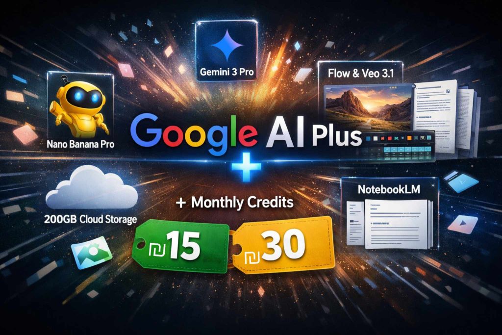 Google AI Plus מושק בישראל וב-35 טריטוריות נוספות, ומביא לראשונה חבילה מאוחדת של כל כלי ה‑AI המתקדמים של גוגל. המנוי כולל את מודלי Gemini 3 Pro ו‑Nano Banana Pro, יצירת וידאו ב‑Flow וב‑Veo 3.1, יצירת תמונות, NotebookLM, תוספת של קרדיטים חודשיים ו‑200GB אחסון בענן. בישראל המחיר עומד על 30 ₪ בחודש, עם מבצע השקה של 15 ₪ לחודשיים הראשונים. זהו מהלך שמסמן את כניסתה של גוגל לשוק ה‑AI הצרכני באופן ישיר ותחרותי, ומחזק את הלחץ על השחקניות המובילות בתחום.