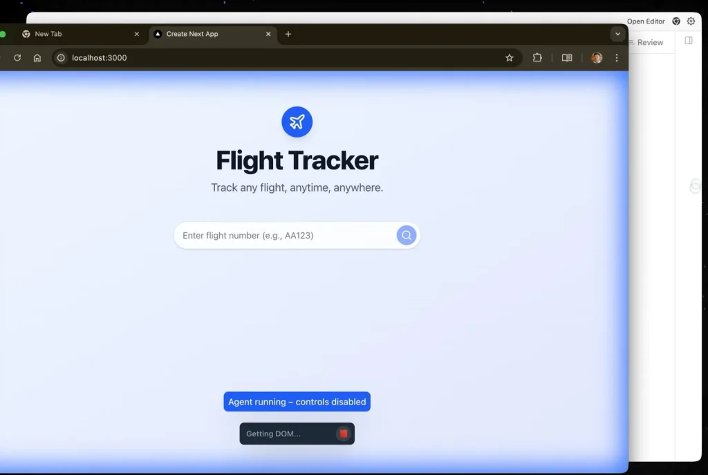 Tab Autocomplete – בזמן שאתם מקלידים, העורך מציע השלמות חכמות שמבוססות על הקונטקסט של כל הפרויקט. בדוגמה שלנו, נניח ונרצה להחליף את ה-Mock API בנתונים אמיתיים. העורך מציע לנו אוטומטית את הקוד הנכון כי הוא יודע על ה-Aviation Stack API שהסוכן השני חקר.