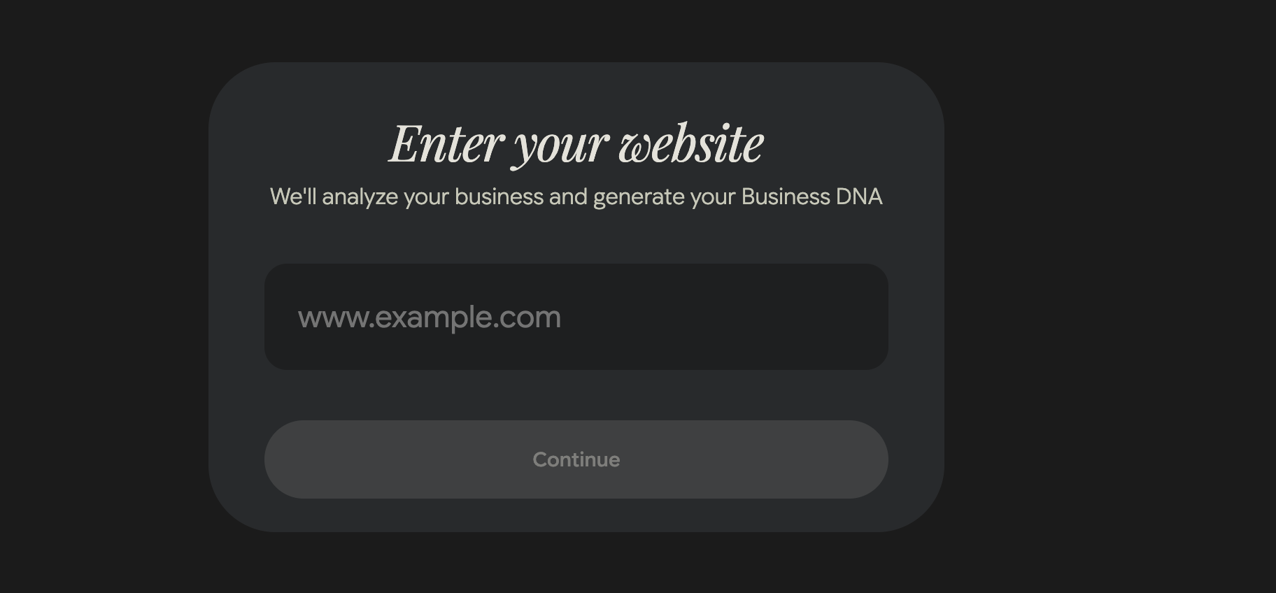 השלב הראשון והמבריק ביותר הוא הזנת כתובת האתר שלכם. זה הכל. מרגע זה, פומלי סורק ומנתח את האתר שלכם ומייצר “DNA עסקי” – תמצית מיתוגית הכוללת: