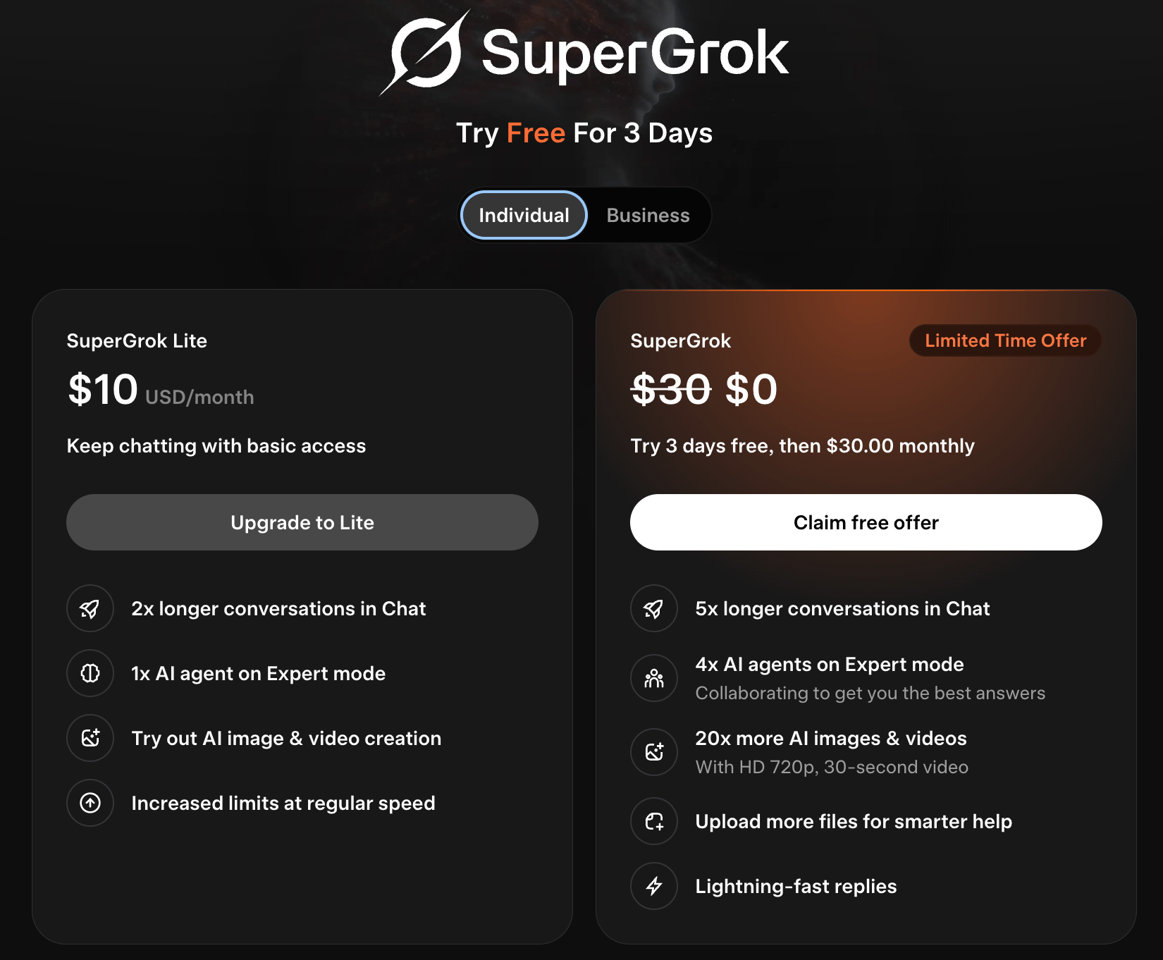 Heavy / SuperGrok - משתמשים בתשלום חודשי ומשתמשים כבדים (power users) וגם אופציות לארגונים.