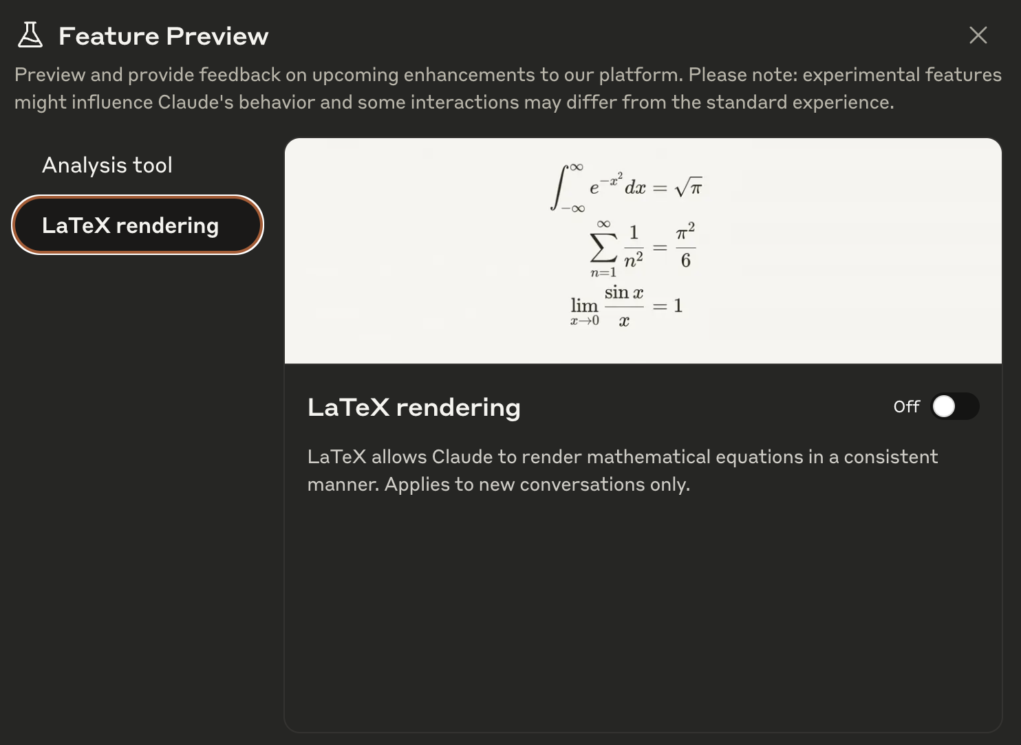 6. מדעים: LaTeX, נמצא גם הוא תחת Feature Preview, הוא כלי חיוני לכל מי שעובד עם נוסחאות מתמטיות, משוואות מדעיות או תכנים אקדמיים. בין אם אתם חוקרים, מהנדסים, מדענים או מרצים – הפעילו את המתג LaTeX rendering כדי להציג את הנוסחאות המורכבות שלכם בפורמט מקצועי, ברור ומדויק.