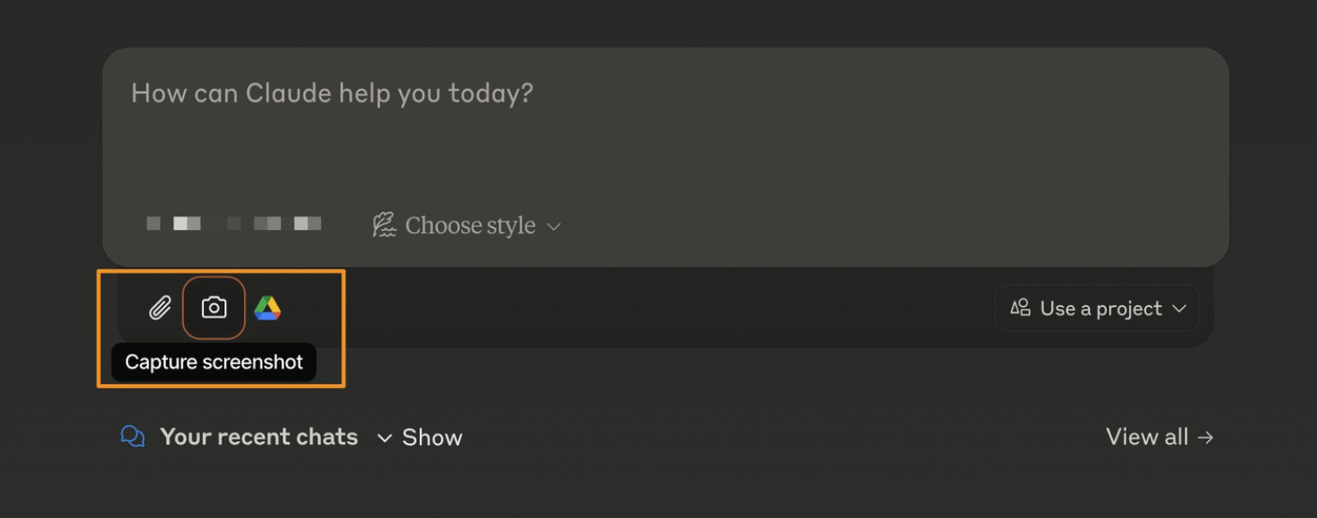 Claude גם מציע דרך חדשה ונוחה לעבוד עם מידע חזותי באמצעות כלי צילום המסך המובנה שלו. במקום להעתיק ולהדביק תמונות או כתחליף לפעולת שמירת קובץ מסוים בכדי להעלות או לגרור אותו לממשק, תוכלו פשוט ללכוד את המידע שאתם רואים על המסך – בין אם זה גרף, טבלה או כל תוכן חזותי אחר – ולשלב אותו ישירות בשיחה. Claude יכול לנתח את התוכן החזותי באופן מיידי, להפיק ממנו תובנות, ולשלב אותו בצורה חלקה בתהליך העבודה שלכם.