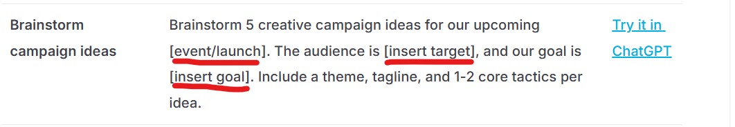 - התאמת הפרומפט: לאחר העתקת הפרומפט ל-ChatGPT (או לכל LLM אחר), מחליפים את הסוגריים בפרטים הרלוונטיים לארגון או לפרויקט (ראו דוגמה מטה), ושולחים.