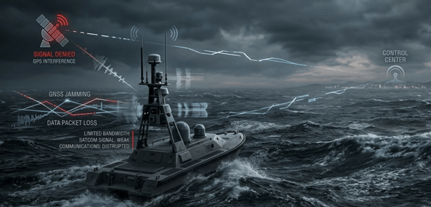 אם מחברים את ההתפתחויות האילו למלחמה באיראן, רואים עד כמה הרעיון של להקה ימית אוטונומית כבר אינו תרגיל עתידני אלא צורך מבצעי. המרחב שבין המפרץ הפרסי, מצרי הורמוז ומפרץ עומאן מציג בדיוק את תנאי הקצה שעליהם המערכות האלה נבנות: MARAD האמריקאי מזהיר כעת מפני תקיפות איראניות על כלי שיט מסחריים באזור, ו-JMIC/UKMTO מדווחות על שיבושי GNSS/GPS, spoofing, jamming ואנומליות AIS מתמשכות, שפוגעים באמינות הניווט ומגדילים את הסיכון למיסקלקולציה גם בלי פגיעה ישירה. בתנאים כאלה, כוח ימי שמבוסס רק על קישור רציף, GPS נקי ומספר קטן של פלטפורמות גדולות נעשה פגיע יותר. לעומת זאת, להקה של כלים קטנים עם חישה מבוזרת, sensor fusion, תיאום מקומי ורשת mesh יכולה לשמר נוכחות, סיור והתרעה גם בתוך “ערפל אלקטרוני” וגם תחת איום של טילים, כטב"מים וכלים מהירים.