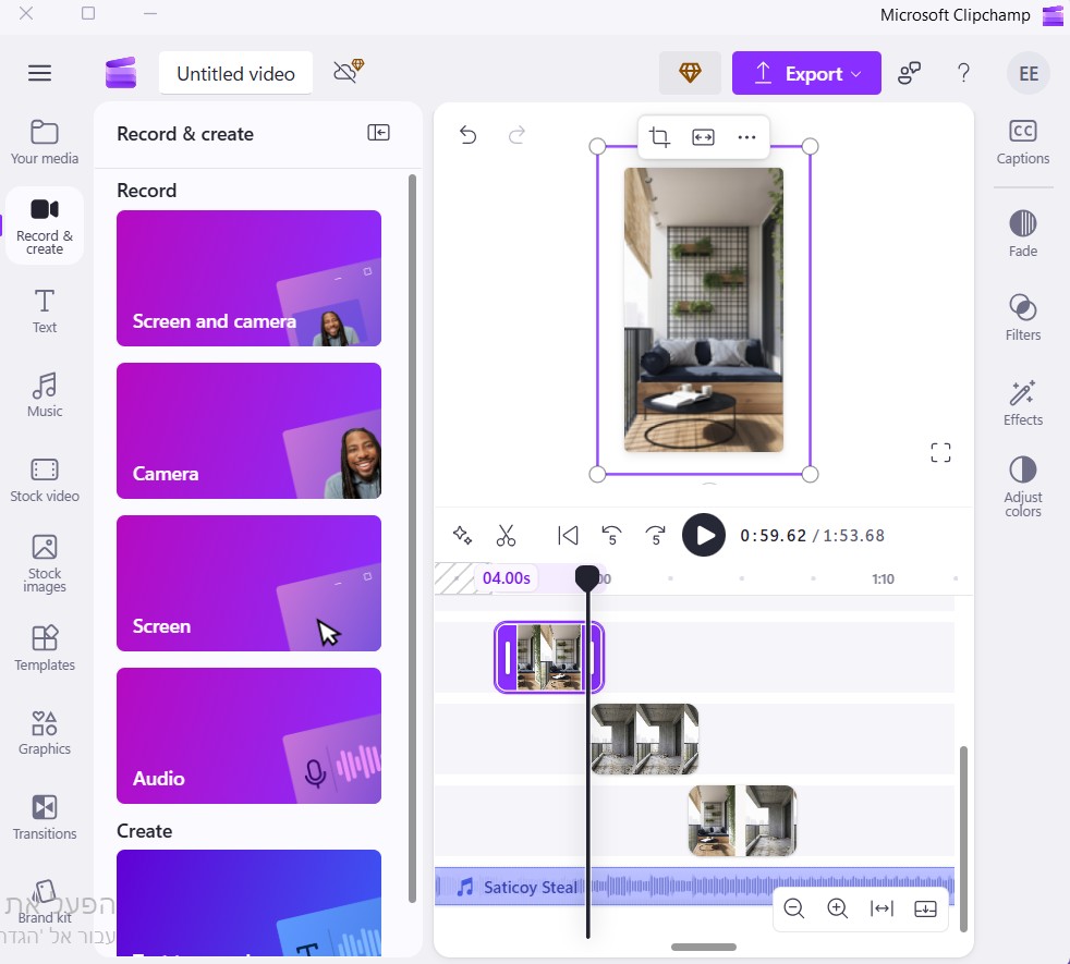 בשלב האחרון מורידים את שני הסרטונים ומחברים אותם בתוכנת עריכה פשוטה. ניתן לעבוד עם כלים כמו Clipchamp, Kapwing או CapCut, וגם Canva מתאימה בהחלט לעריכה מהירה. מחברים קודם את סרטון הבנייה ואז את סרטון הזום, בלי אפקטים מיותרים ובלי עומס טקסט. חשוב לציין שמודלים כמו Veo לרוב מוסיפים סאונד לסרטון. אפשר להשתמש בו, או לחלופין, להוריד את הווליום של כל השוטים ל-0 ואז להוסיף טרק סאונד חדש עם מוזיקה. אפשר ליצור פסקול עם AI בקלות בתוך כלים כמו Suno. פשוט בחרו באופציית Instrumental.