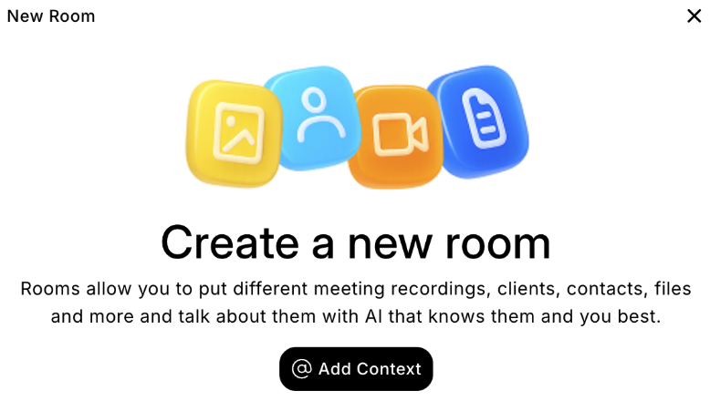 ה-Rooms הם מרחבי עבודה קבועים לפי לקוחות, פרויקטים או נושאים. כל פעם שמתקיימת פגישה רלוונטית, החדר מתעדכן אוטומטית עם סיכום פגישה מוכן עבורכם בלוח ההקשר (context panel), משימות ותוצרים. אין צורך לתייג ידנית או לארגן קבצים, המערכת מזהה הקשרים בעצמה. כשאתם חוזרים לחדר, הכל שם – כולל מה שדובר, מה שנסגר ומה שנשאר פתוח. אתם יכולים להוסיף עוד הקשרים, לקוח או פגישות עבר ולבנות את החדר סביב כל נושא שתבחרו.